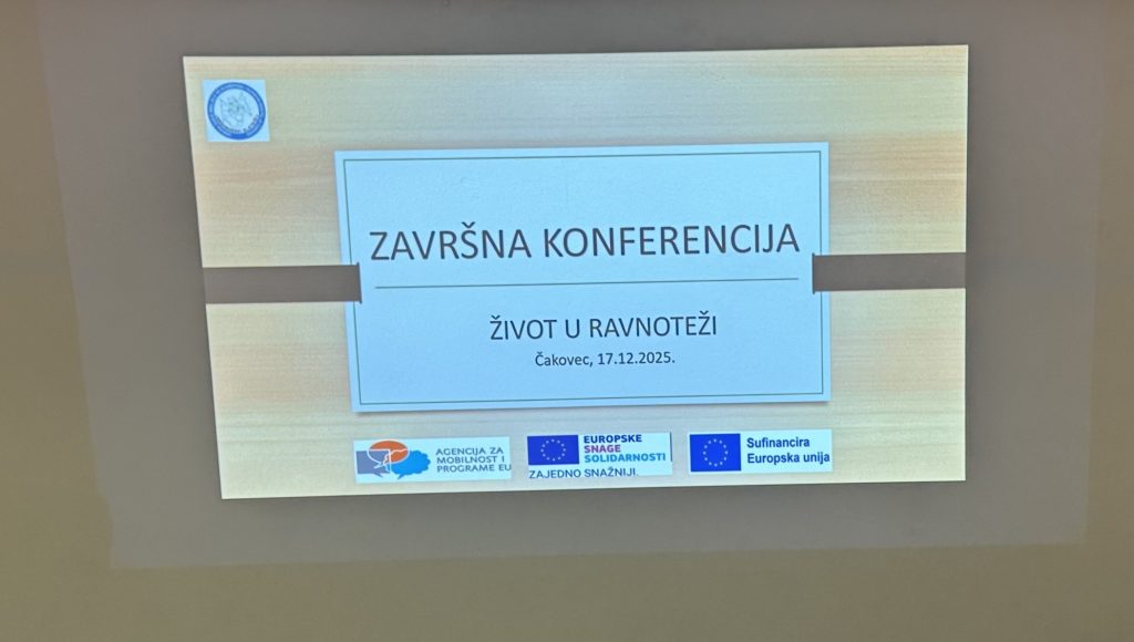 U srijedu, 17. prosinca 2025., na Gradskim bazenima Marija Ružić u Čakovcu održana je Završna konferencija projekta „Život u ravnoteži“ kodni broj 2024-3-HR01-ESC30-SOL-000269693 i predstavljena Brošura kojom je zaokruženo 12 mjesečno provođenje aktivnosti usmjerenih na podršku djeci i mladima oboljelima od dijabetesa te njihovim obiteljima. Završnu konferenciju vodio je Erik Mutvar, voditelj projekta, koji je okupljenima predstavio tijek projekta, ključne aktivnosti, ostvarene rezultate i brošuru.